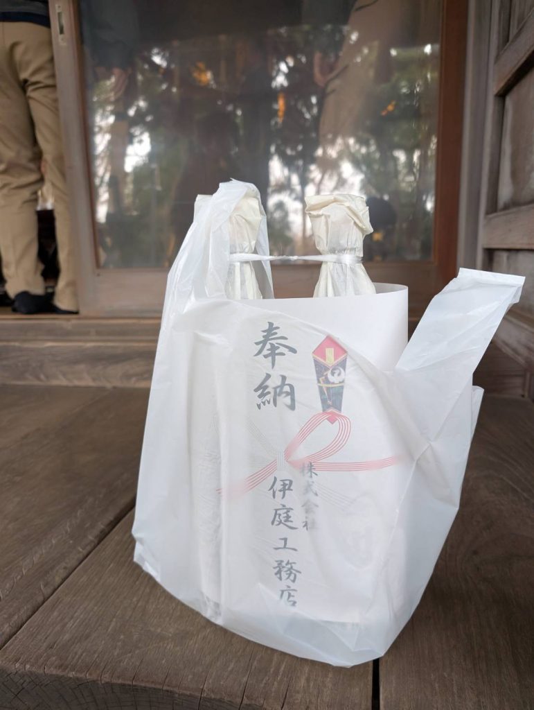 神前に供えるお酒を 伊勢利酒店様 にて購入。